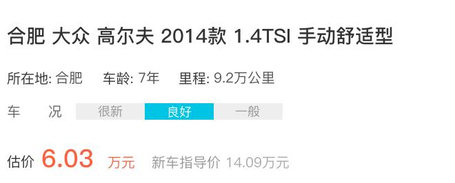 該款車2014年上牌啟用,行駛9.2萬公里,新車指導價14.09萬元,車況良好的情況下,成交價5.15萬。